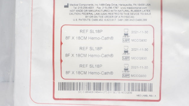 - MedComp SL18P Hemo-Cath Silicone Double Lumen Cath. Set 8F x 18cm (x)