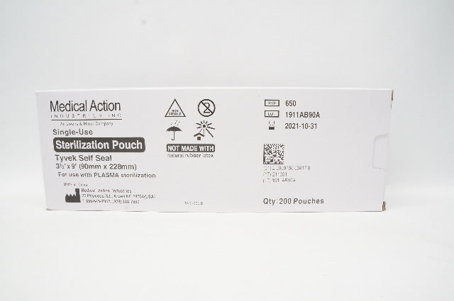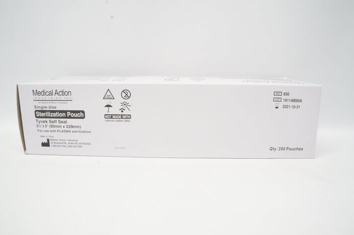 - Medical Action 650 Sterilization Pouch Tyvek Self Seal 3-1/2 x 9 in - Box of 200