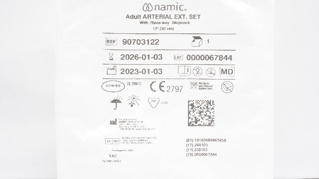 - Medline 90703122 Namic Adult Arterial Ext. Set W/Three-way Stopcock 12inch