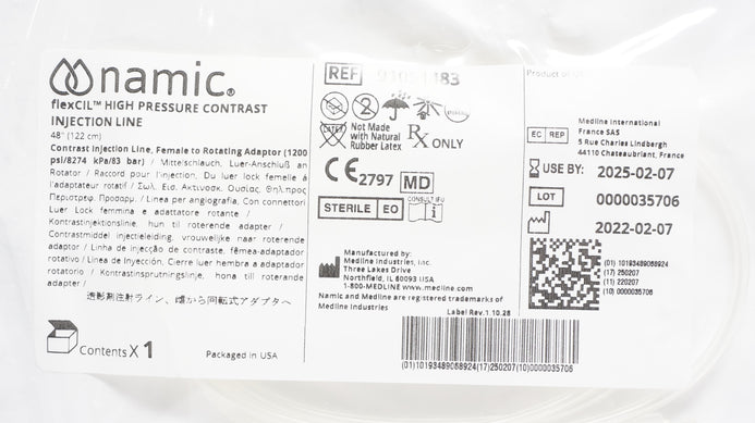 - Medline 91051483 Namic FlexCil High Pressure Contrast Injection Line 48inch (x)