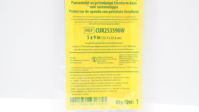 - Medline CUR253590W Curad Xeroform Petrolatum Dressing in Overwrap 5 x 9inch