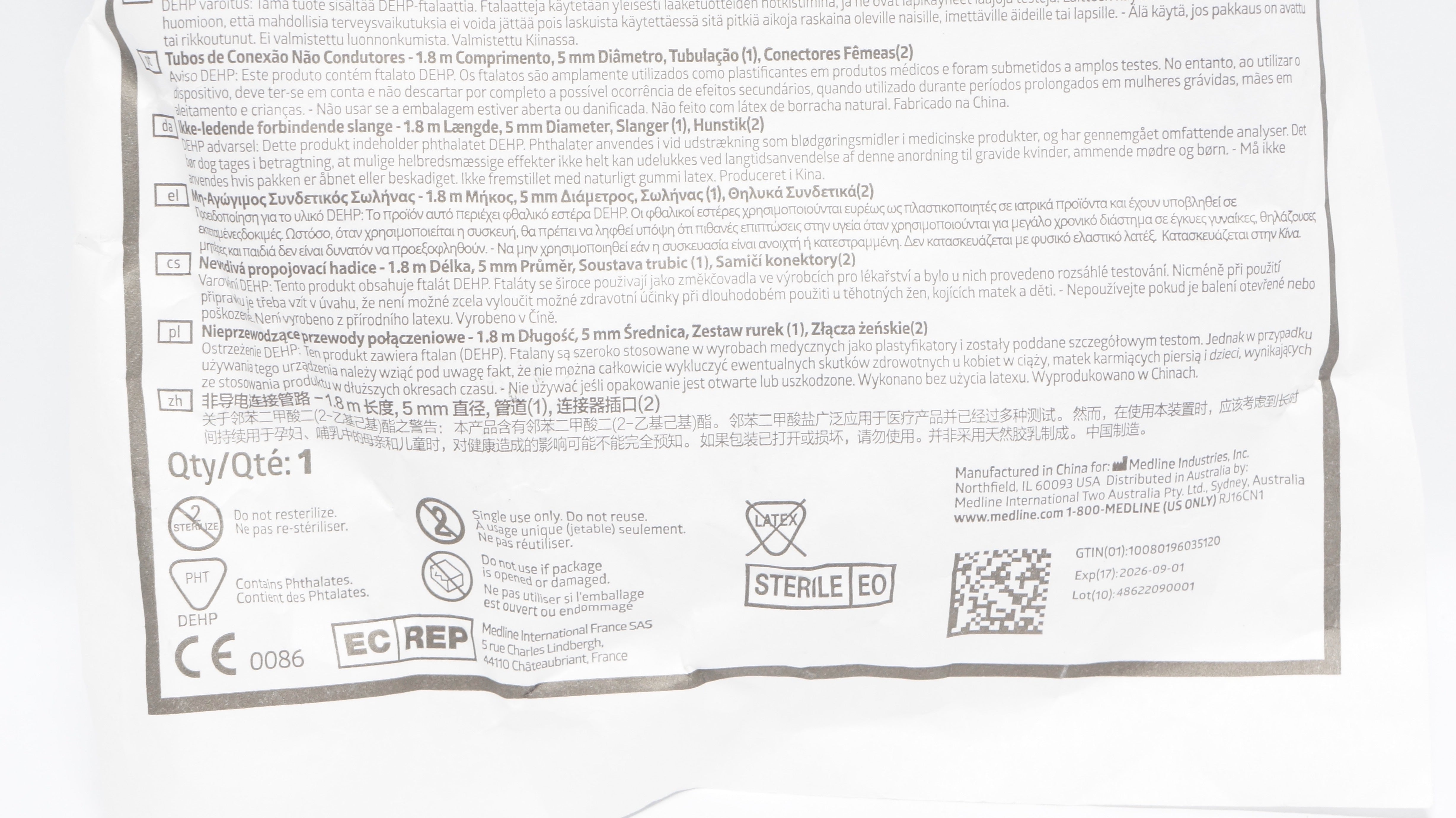 - Medline DYND50216 Non-Conductive Connecting Tubing 3/16inch x 6ft.