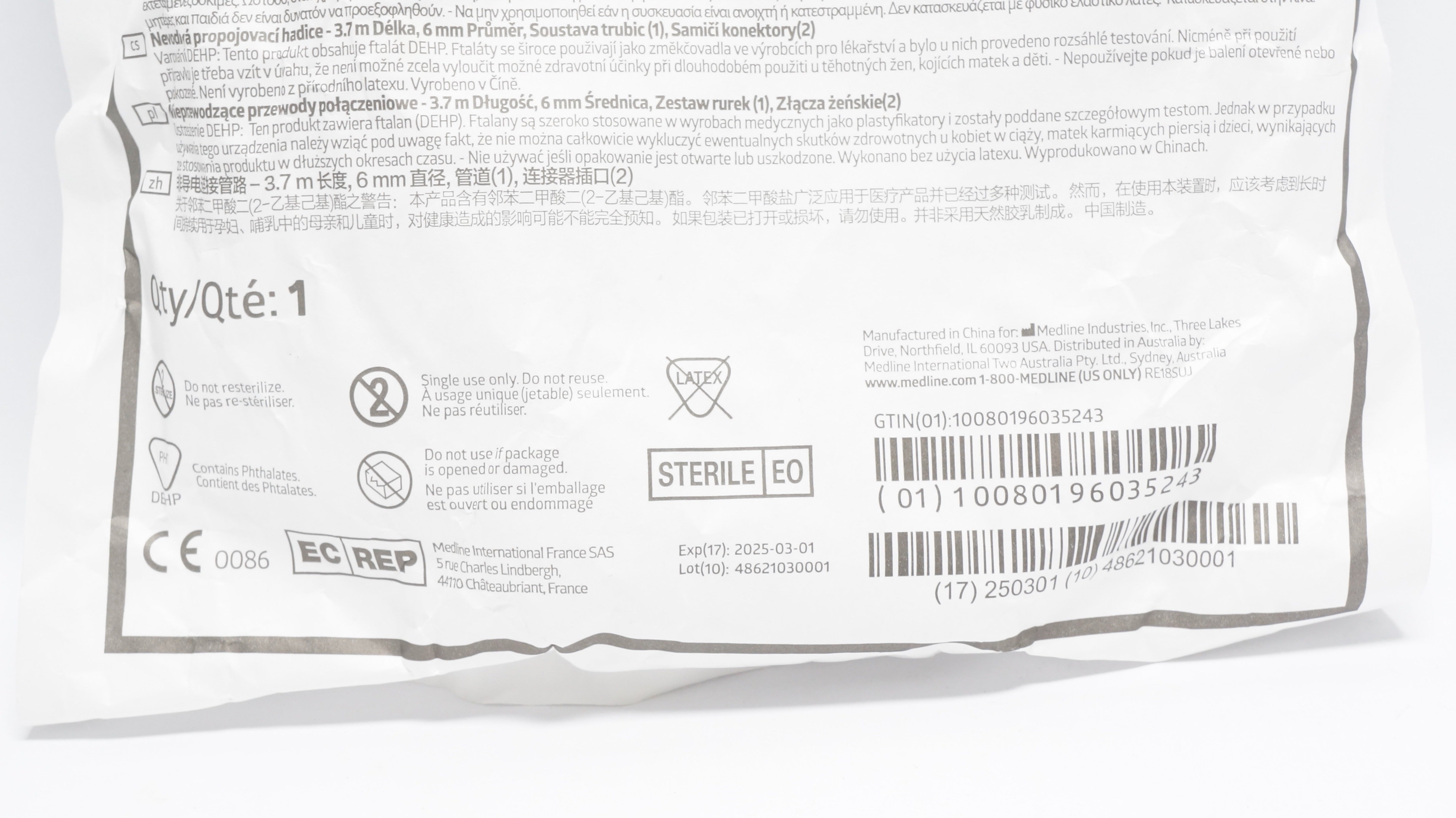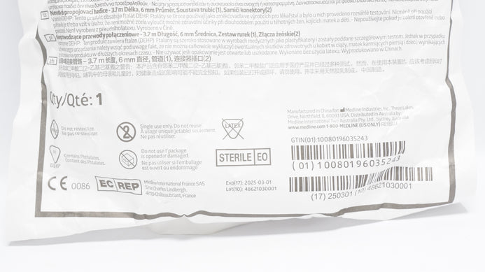 - Medline DYND50252 Non-Conductive Connecting Tubing 12ft. x 1/4inch Connectors(x)