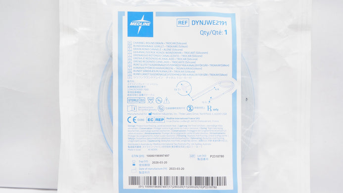 - Medline DYNJWE2191 Channel Round Drain + Trocar (Silicone) 19Fr