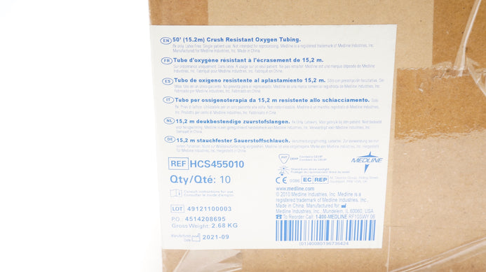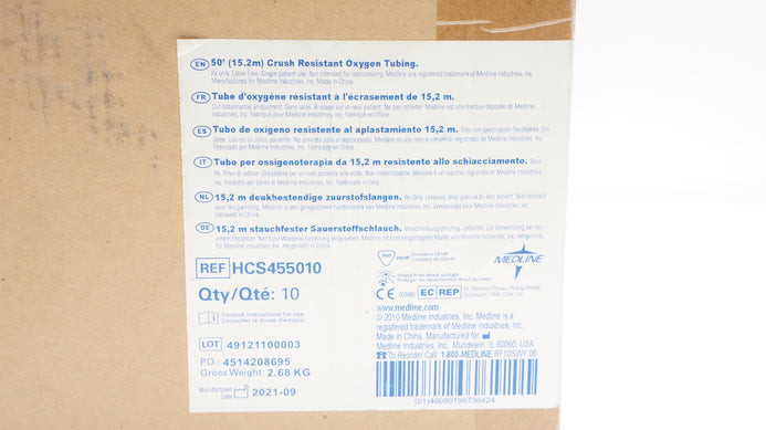 - Medline HCS455010 Crush Resistant Oxygen Tubing 50Ft. - Case of 10
