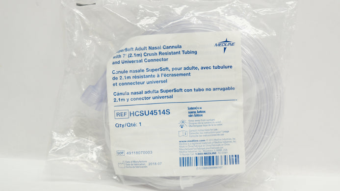 - Medline HCSU4514S Supersoft Adult Nasal Cannula w/Cruch Resistant Tubing 7Ft.