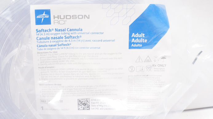 - Medline HUD1818 Hudson RCI Softech Nasal Cannula W/Standard Connector Adult 14ft