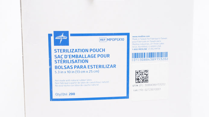 - Medline MPOP5X10 Instrument Sterilization Pouche 5.3 inch x 10 inch - Box of 200