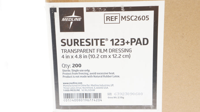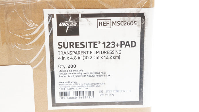 - Medline MSC2605 Suresite 123+Pad Transparent Film w/Pad - Box of 200