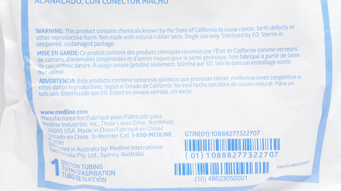 - Medline OR710 Suction Tubing 9/32inch x 10ft. Ribbed With Male Connector