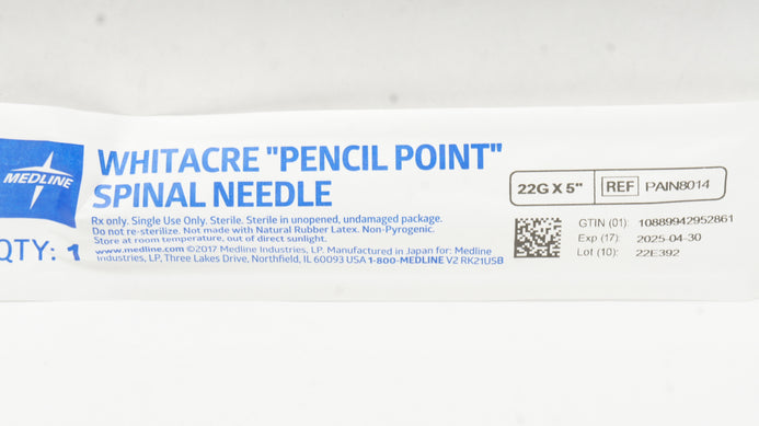 - Medline PAIN8014 Whitacre "Pencil Point" Spina; Needle 22G x 5In