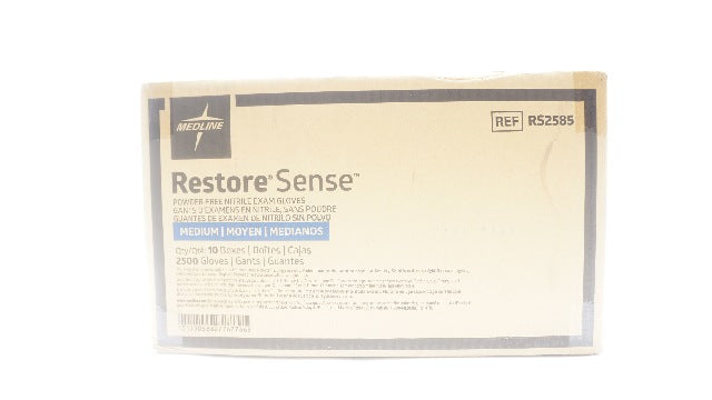 - Medline RS2585 Restore Sense Powder-Free Nitrile Exam Gloves, M - Case of 2500