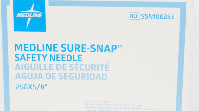 - Medline SSN100253 Sure-Snap Safety Ndle 25G x 5/8 - Box of 44
