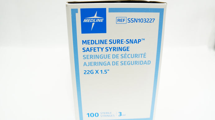 - Medline SSN103227 Sure-Snap Safety Syringe 22G x 1.5inch - Box of 58