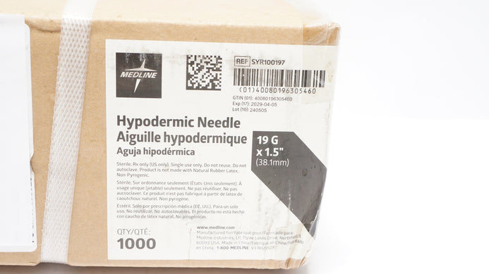 - Medline SYR100197 Hypodermic Ndle 19G x 1.5inch - Box of 1000