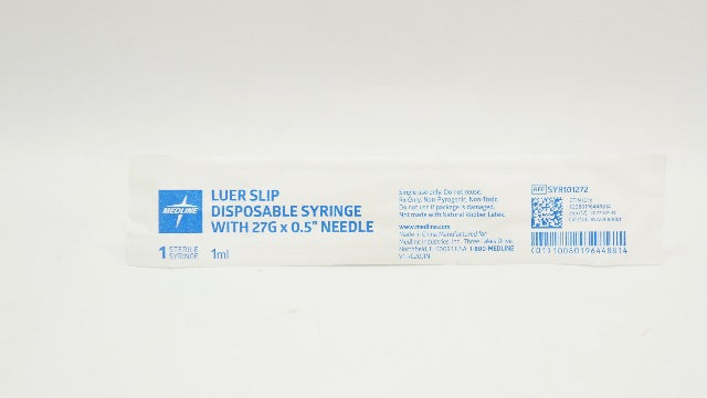 - Medline SYR101272 Luer Slip Disposable Syrige W/ Ndle 27G x 0.5inch