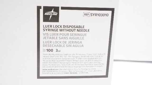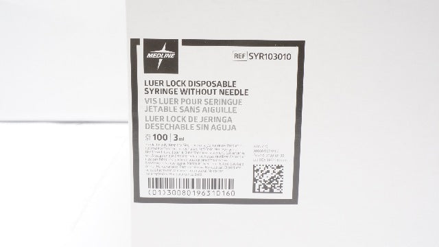 - Medline SYR103010 3ml Luer Lock Disposable Syringe w/o Ndle - Box of 100