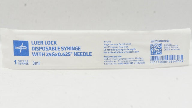 - Medline SYR103253 Luer Lock Disposable Syringe w/Ndle 25G x 0.625inch