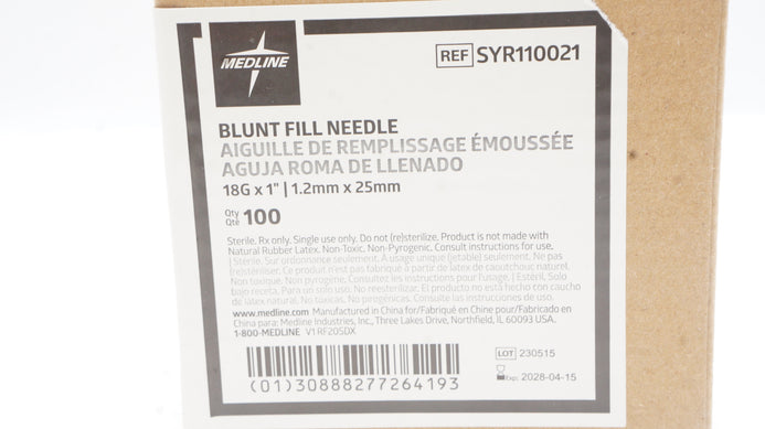 - Medline SYR110021 Blunt Fill Ndle 18G x 1inch - Box of 100