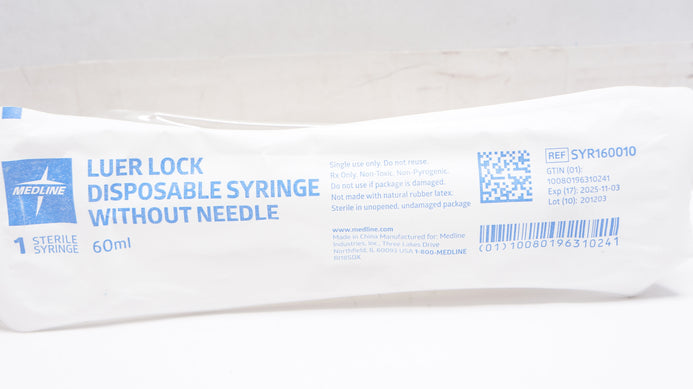 - Medline SYR160010 Luer Lock Disposable Syringe Without Ndle 60ml