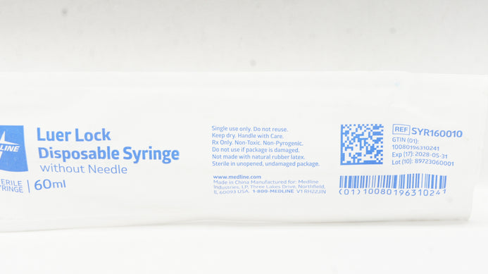 - Medline SYR160010 Luer Lock Disposable Syringe Without Ndle 60ml