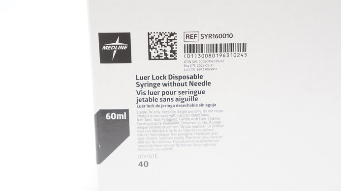 - Medline SYR160010 Luer Lock Disposable Syringe Without Ndle 60ml - Box of 40