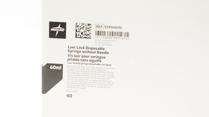 - Medline SYR160010 Luer Lock Disposable Syringe Without Ndle 60ml - Box of 40