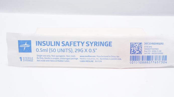 - Medline SYRSI193292 Insulin Safety Syringe 0.5ml, 29G x 0.5inch
