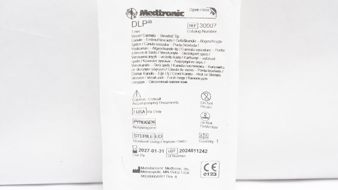 - Medtronic 30007 DLP 3mm Vessel Cannula Beveled Tip