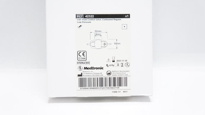 - Medtronic 42322 CSF-Flow Control Valve, Contoured Regular 32 x 14 x 18mm (x)