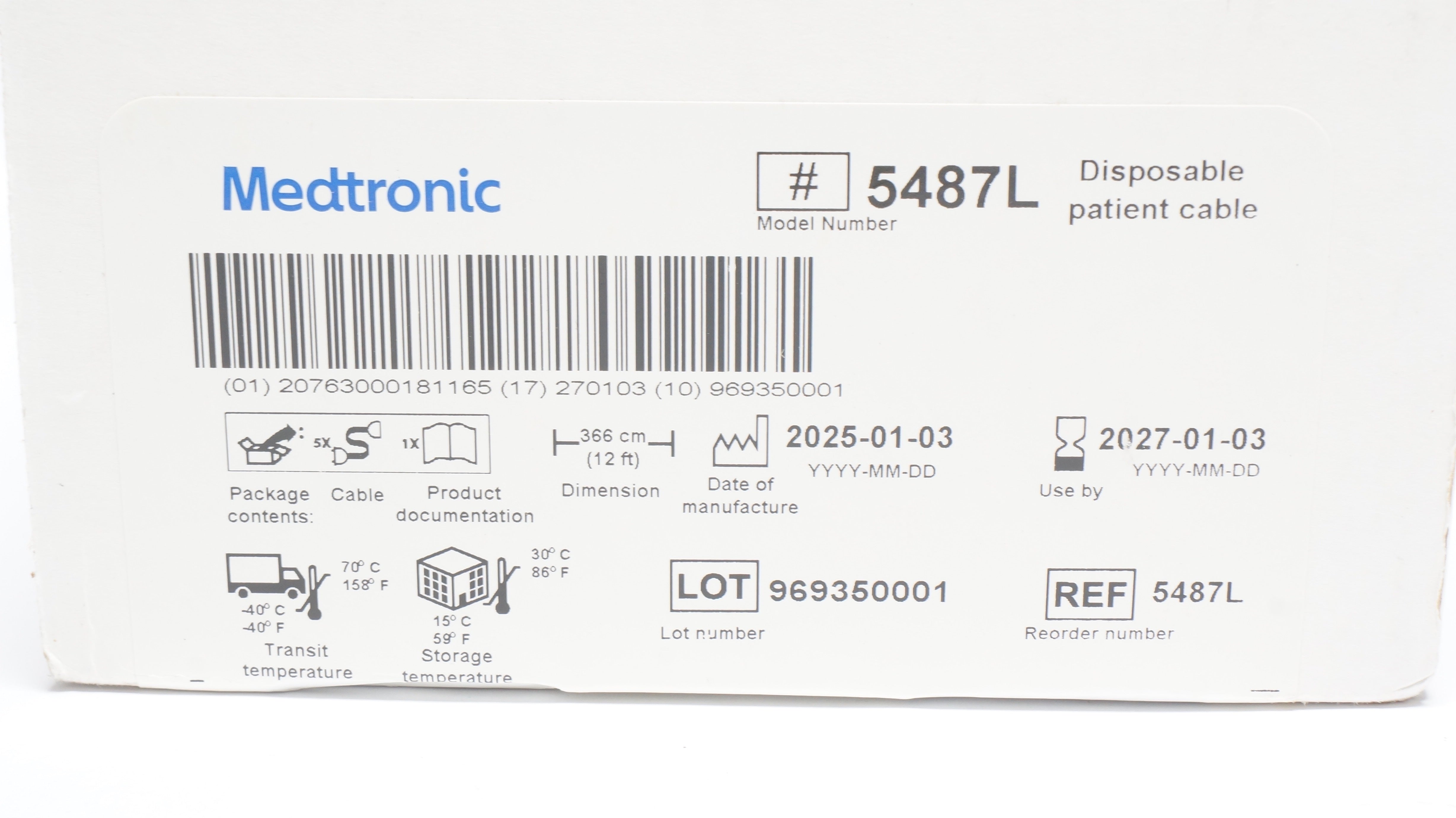 - Medtronic 5487L Disposable Patient Cable 12Ft