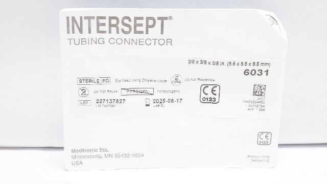 - Medtronic 6031 Intersept Tubing Connector 3/8 x 3/8 x 3/8inch (x)