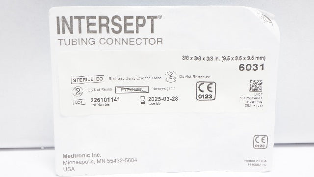- Medtronic 6031 Intersept Tubing Connector 3/8 x 3/8 x 3/8inch (x)