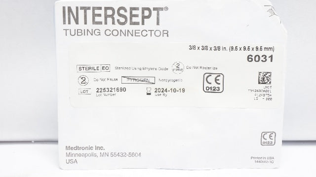 - Medtronic 6031 Intersept Tubing Connector 3/8 x 3/8 x 3/8inch (x)