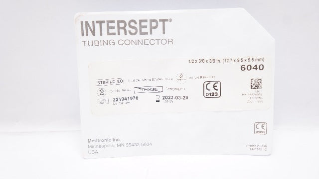 - Medtronic 6040 Intersept Tubing Connector 1/2 x 3/8 x 3/8inch (x)