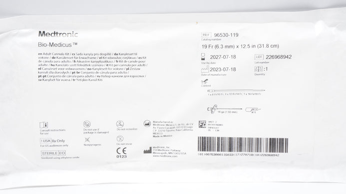 - Medtronic 96530-119 Bio-Medicus Adult Cannula Kit 19Fr x 12.5inch