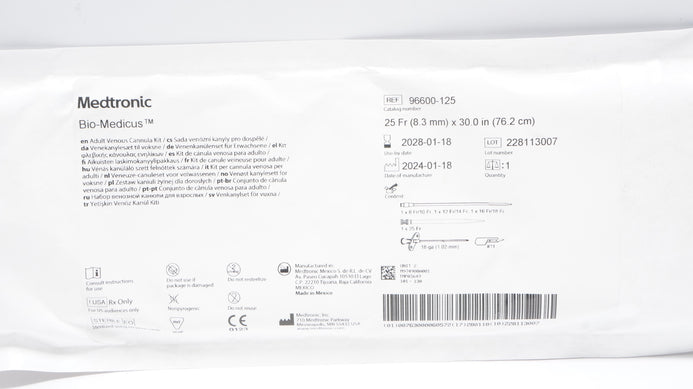 - Medtronic 96600-125 Bio-Medicus Adult Venous Cannula Kit 25Fr x 30.0inch