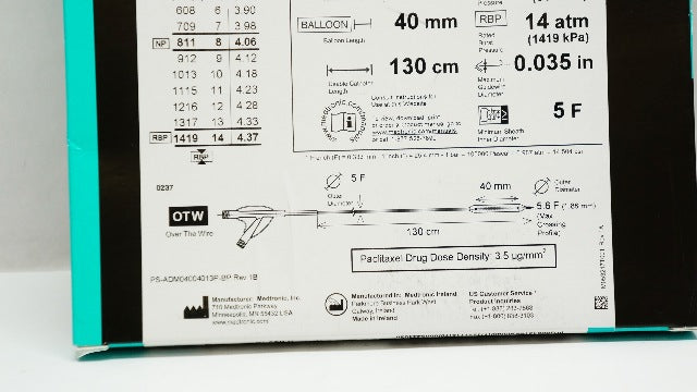 - Medtronic ADM04004013P IN.PACT Admiral PTA Balloon Cath. 4mm x 40mm x 130cm (x)