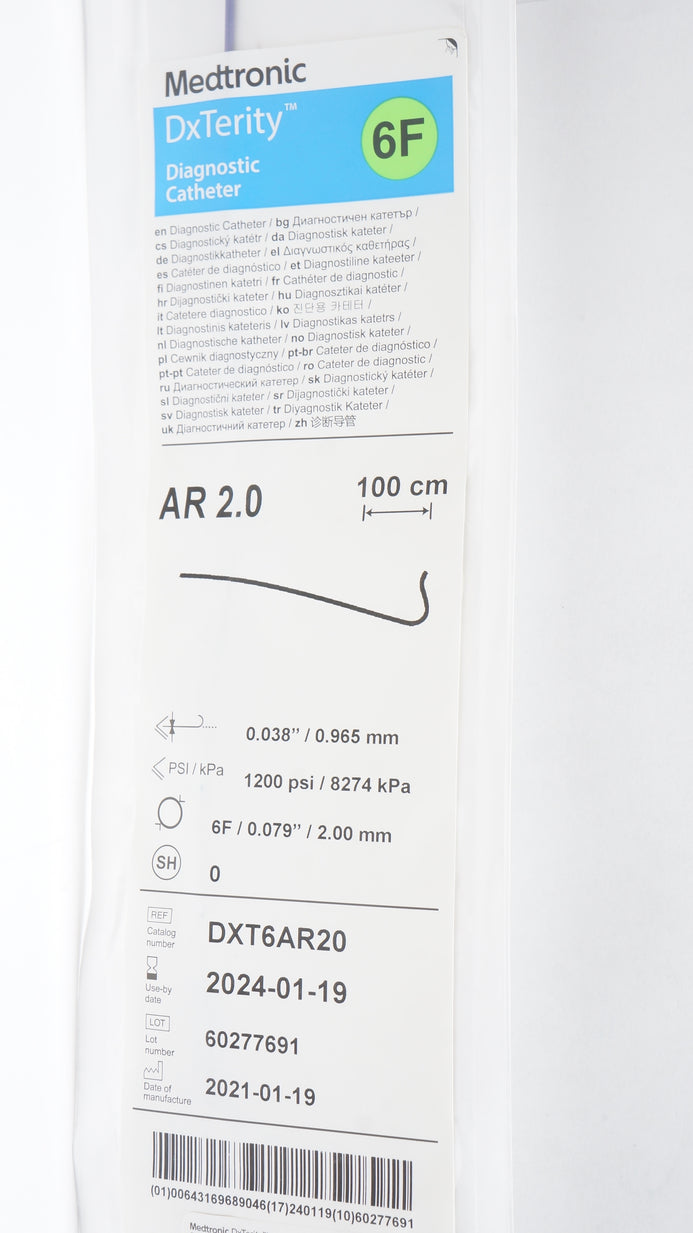 - Medtronic DXT6AR20 DxTerity Diagnostic Cath. AR 2.0, 6F x 100cm (x)