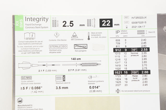 - Medtronic INT25022UX Integrity Rapid Exchange Coronary Stnt 2.5mm x 22mm (x)