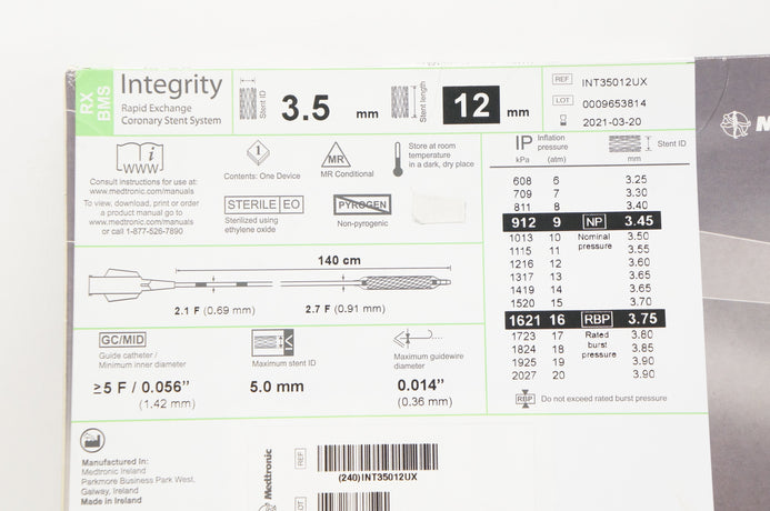 - Medtronic INT35012UX Integrity Rapid Exchange Coronary Stnt System 3.5 x 12mm(x)