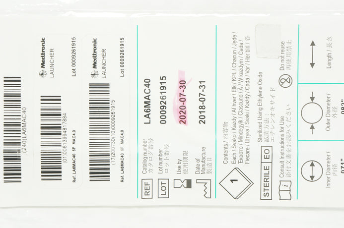 - Medtronic LA6MAC40 Launcher 6F Coronary Guide Cath. MAC4.0, 0.071inch (x)