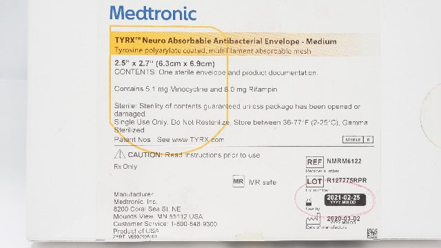 - Medtronic NMRM6122 TYRX Neuro Absorbable Antibacterial Envelope -Medium 2.5in(x)