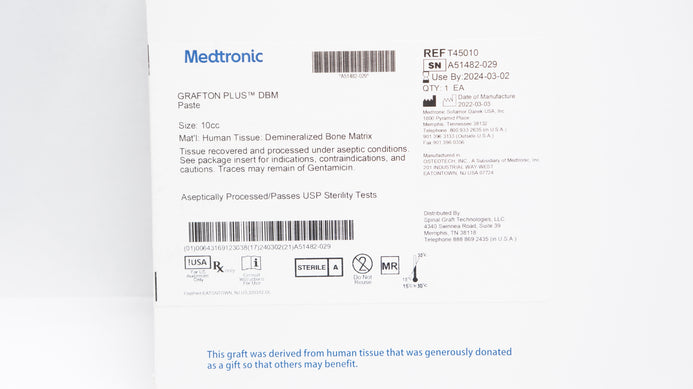 - Medtronic T45010 Grafton Plus Demineralized Bone Matrix Paste 10cc (x)