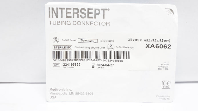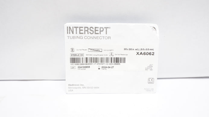 - Medtronic XA6062 Intersept Tubing Connector 3/8 x 3/8inch (x)