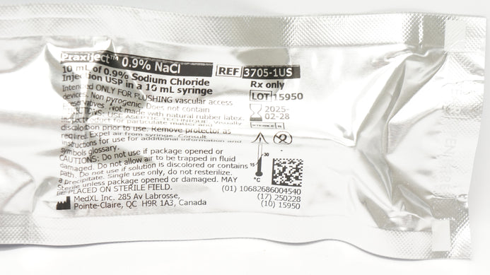 - MedXL 3705-1US Praxiject 10mL of 0.9% NaCl Injection USp In a 10mL Syringe