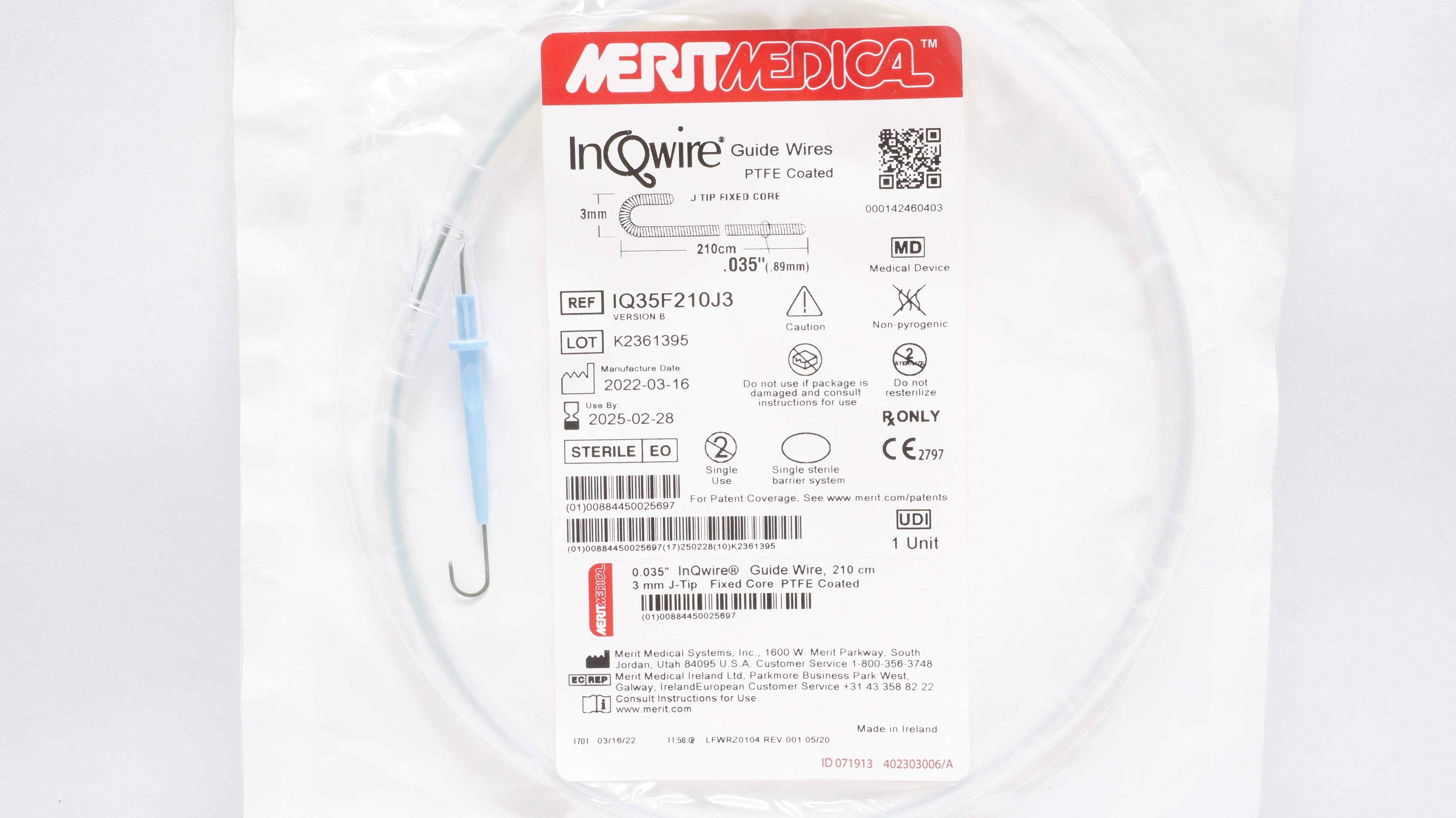 - Merit Medical IQ35F210J3 InQwire Guide Wires 210cm, J Tip Fixed Core (x)