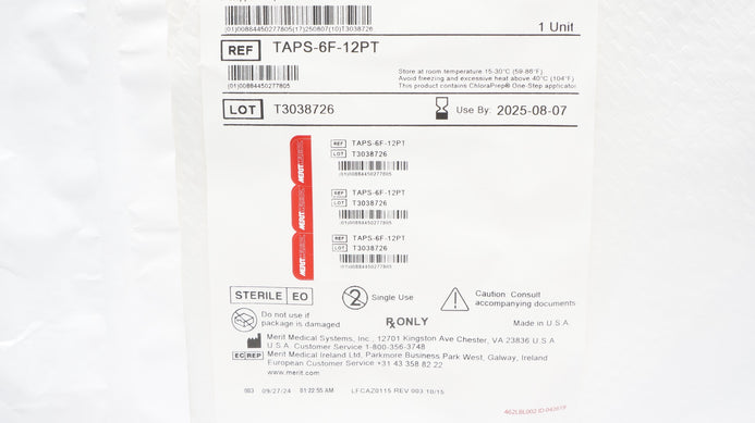 - Merit Medical TAPS-6F-12PT Thoracentesis & Paracentesis Set 6F x 12cm (x)