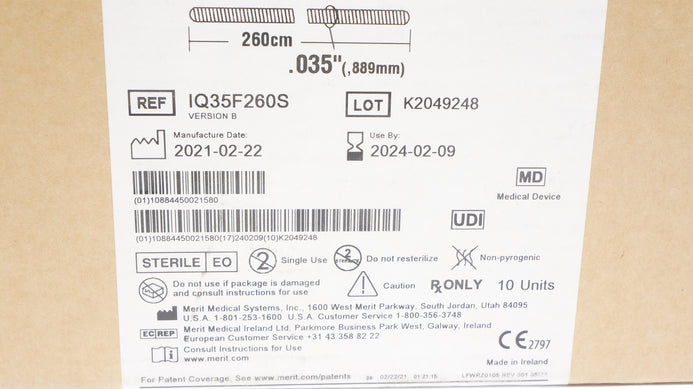 - MeritMedical IQ35F260S InQwire Guide Wires PTFE Coated 260cm x035In-Box of 10(x)