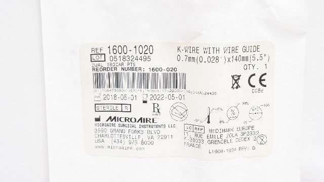 - Microaire 1600-1020 K-Wire w/Wire Guide 0.028inch x 5.5inch (x)